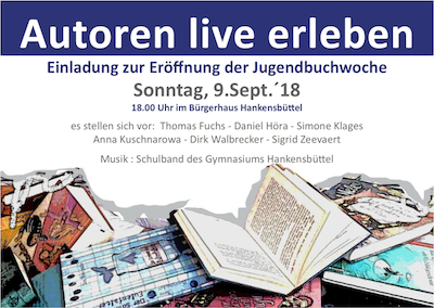 Vom 9.–12. September 2018 veranstaltet der Kulturverein Hankensbüttel seine 15. Jugendbuchwoche für die Schulen der